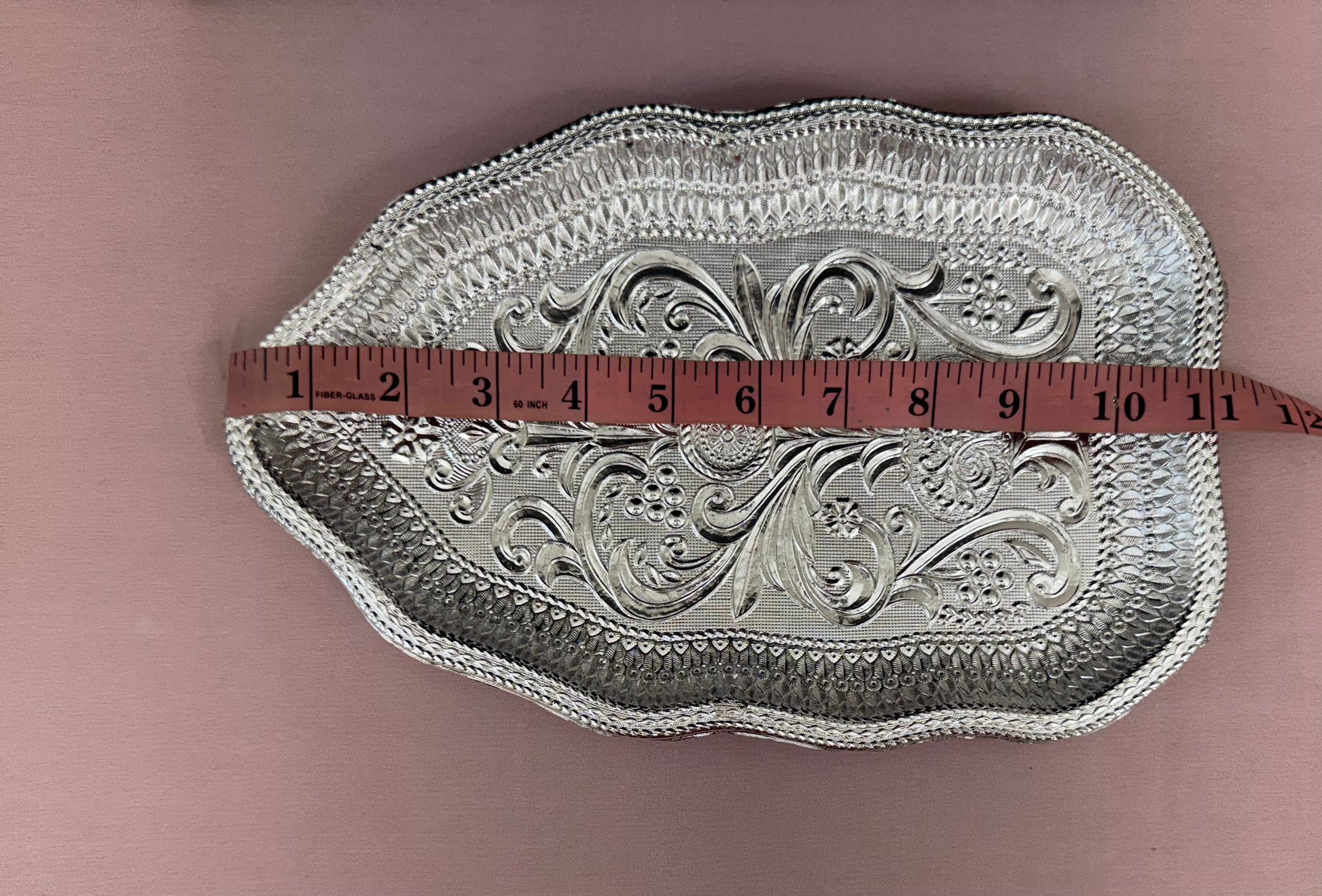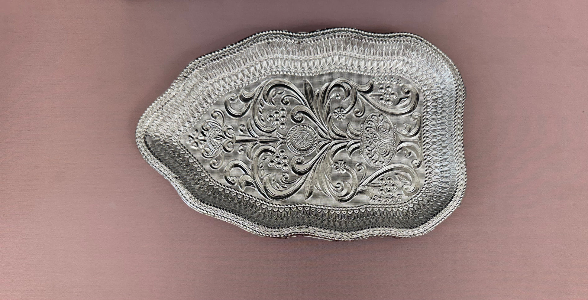 Material : Fiber and Silver Finish Serving Tray. Great for gifting purposes for any occassion.