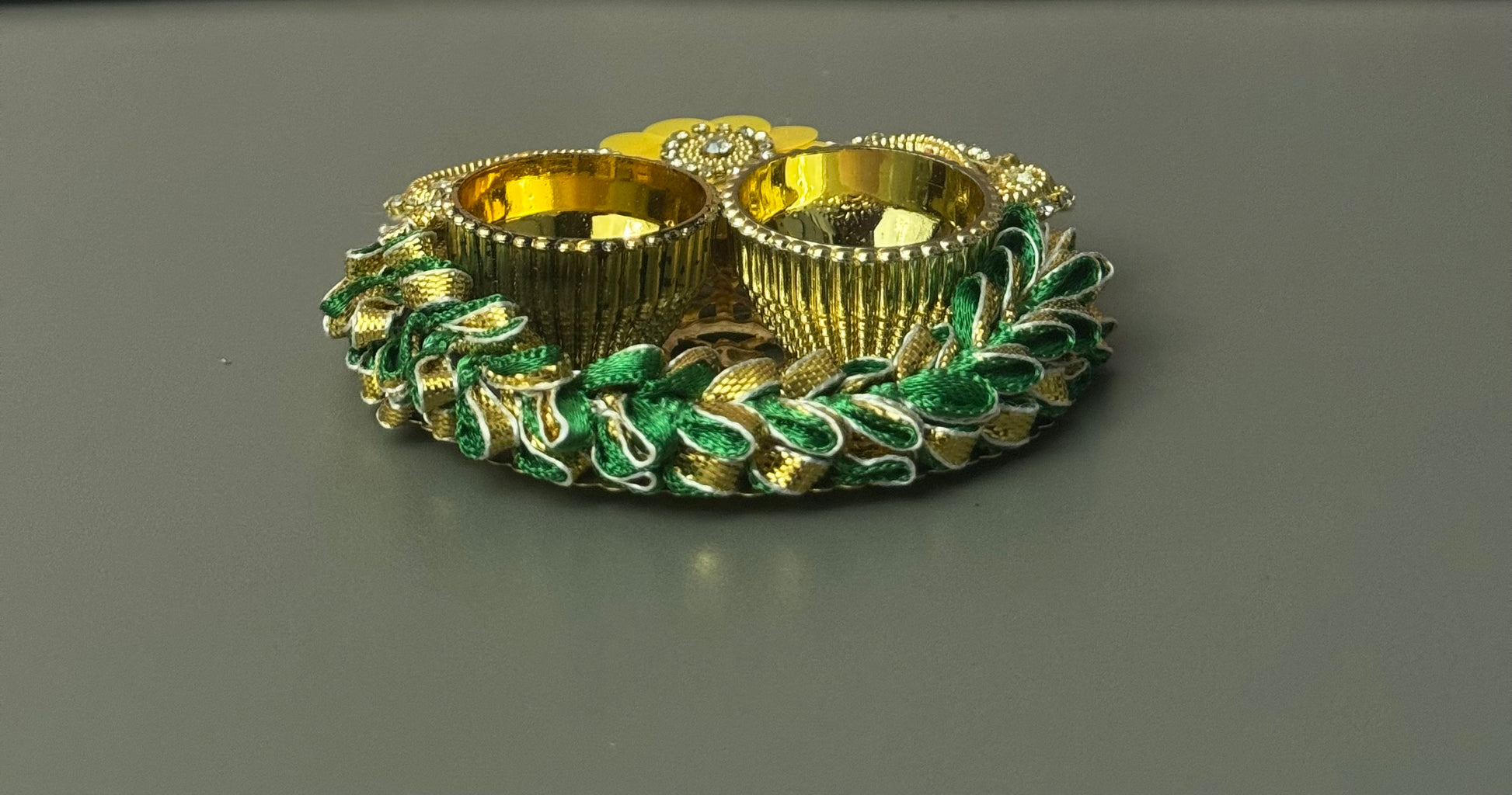 - This return gift piece has 2 small containers to hold kumkum and haldi.