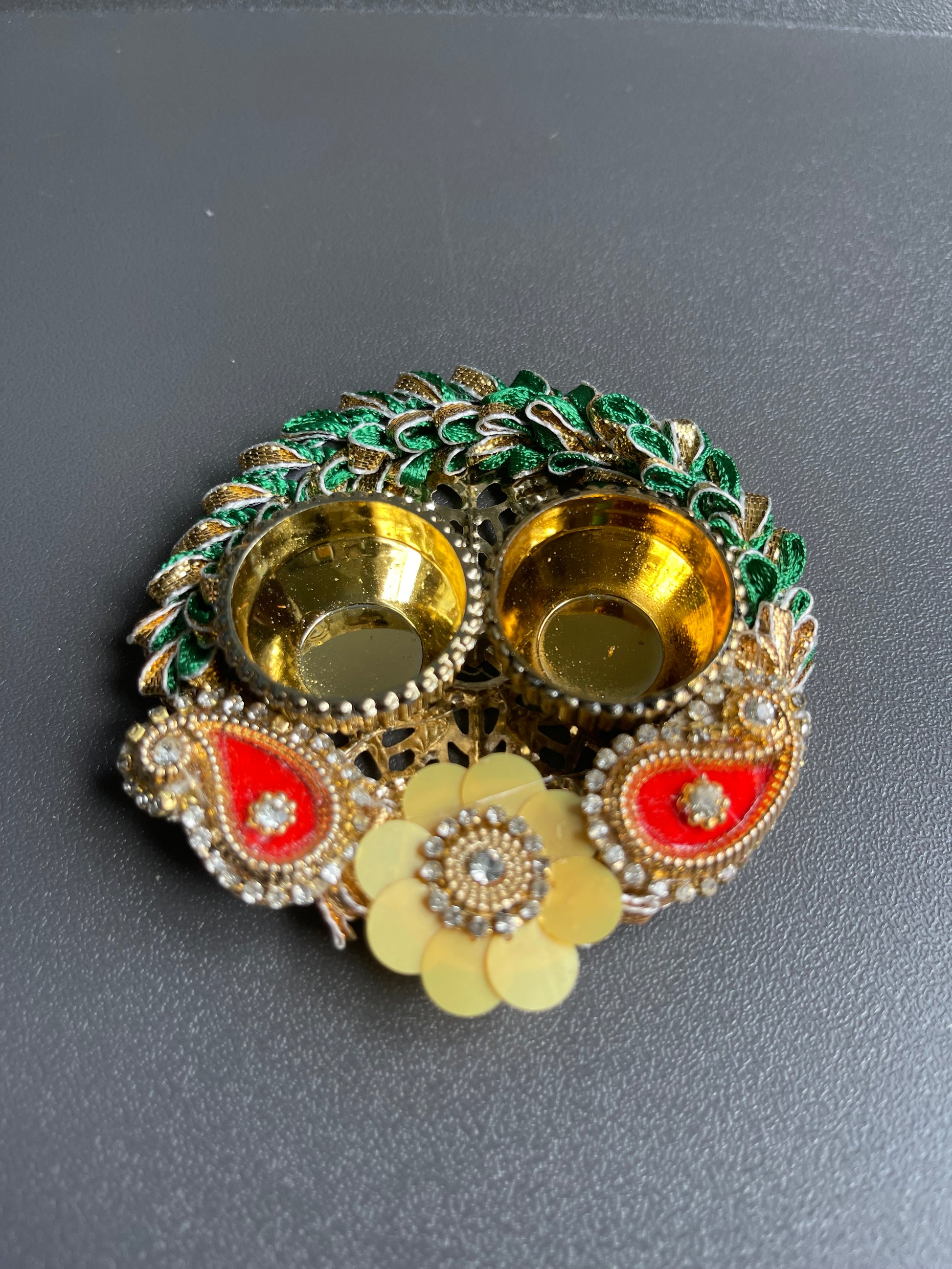 · small bowls kumkum holders itself where you can very easily arrange haldi, kumkum, akshata or other things according to your need, bowls are fixed to base also called as prayer tika Thali.