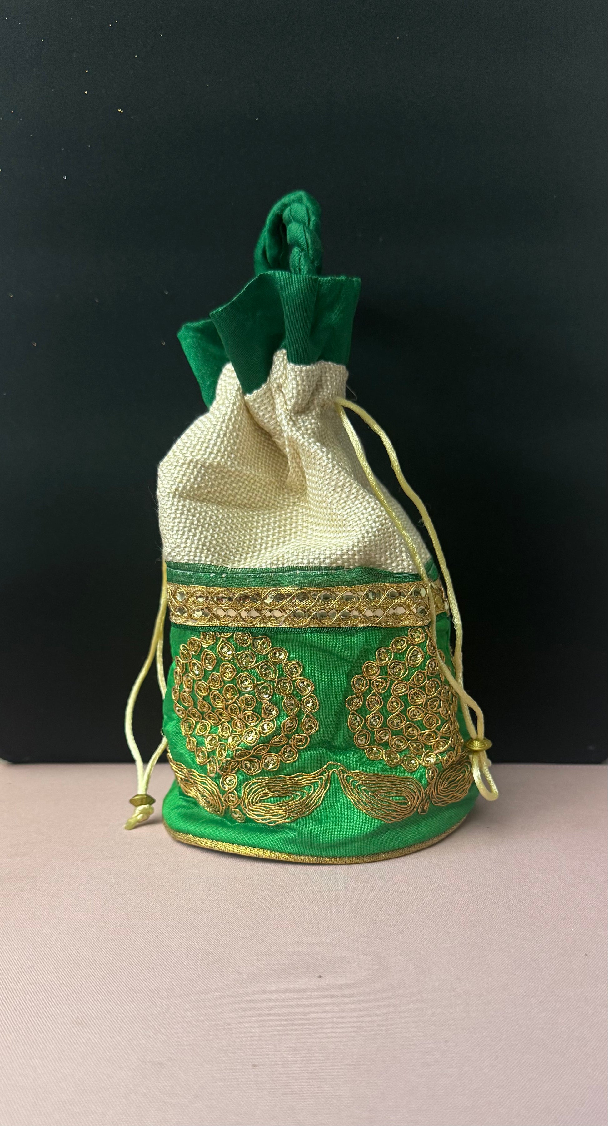 The Potli Bags are vibrant, these bags are made from rich jute fabrics, perfect for adding a touch of elegance to any outfit.The drawstring closure is both stylish and functional, making these bags ideal for carrying small essentials or gifting. It's an amazing choice of return gift to your guests for any celebration.